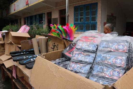 早上九点,我们带着一如既往的初心从公司楼下出发, 从广州前往肇庆广宁县石咀镇。经过连续不断的蜿蜒山路,三个多小时后我们到达了石咀镇。石咀镇,这个我们来了三年的地方,感觉是那么的熟悉,从镇上到周围的村庄都能看到小学生的身影。为了不打扰学生休息,我们选择下午14:00到达建中小学。此时已经有学生陆续返校,见我们到来,学生们打开了校门,不约而同喊着“欢迎欢迎”,脸上洋溢着欢欣的笑容。建中村委、建中小学的校长、老师以石咀镇中心小学校长及副校长及学生们已集中等候,公司购买的打印机、书包、校服、体育用品、学习文具以及图书均摆放在教室门口的红旗下。根据学校的安排,现场举办了简单而有意义的捐赠仪式,为感谢公司的捐助,校长还赠送了 “大爱无疆,捐资助学” 的锦旗。